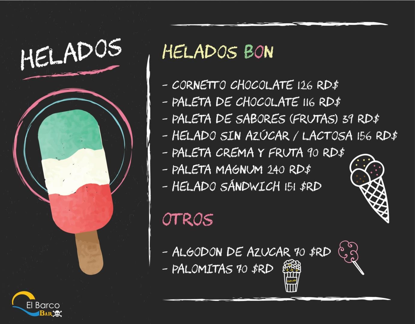 Les presentamos nuestro nuevo menú de helados del Bar El Barco.