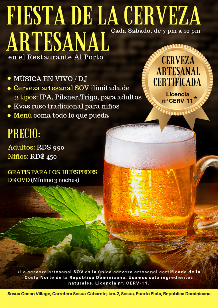Ahora CADA SÁBADO noche de cine durante la FIESTA DE LA CERVEZA ARTESANAL EN EL Restaurante Al Porto. Los niños podrán ver PELICULAS con el proyector en Sosua Ocean Village!